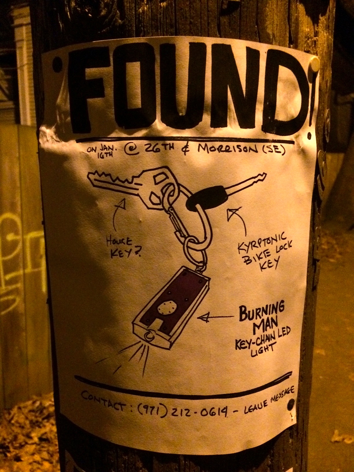 Every time I see these, I always wonder if the kitty made it home, if the garage sale was a success, or— in this case— the owner of the keys were found.