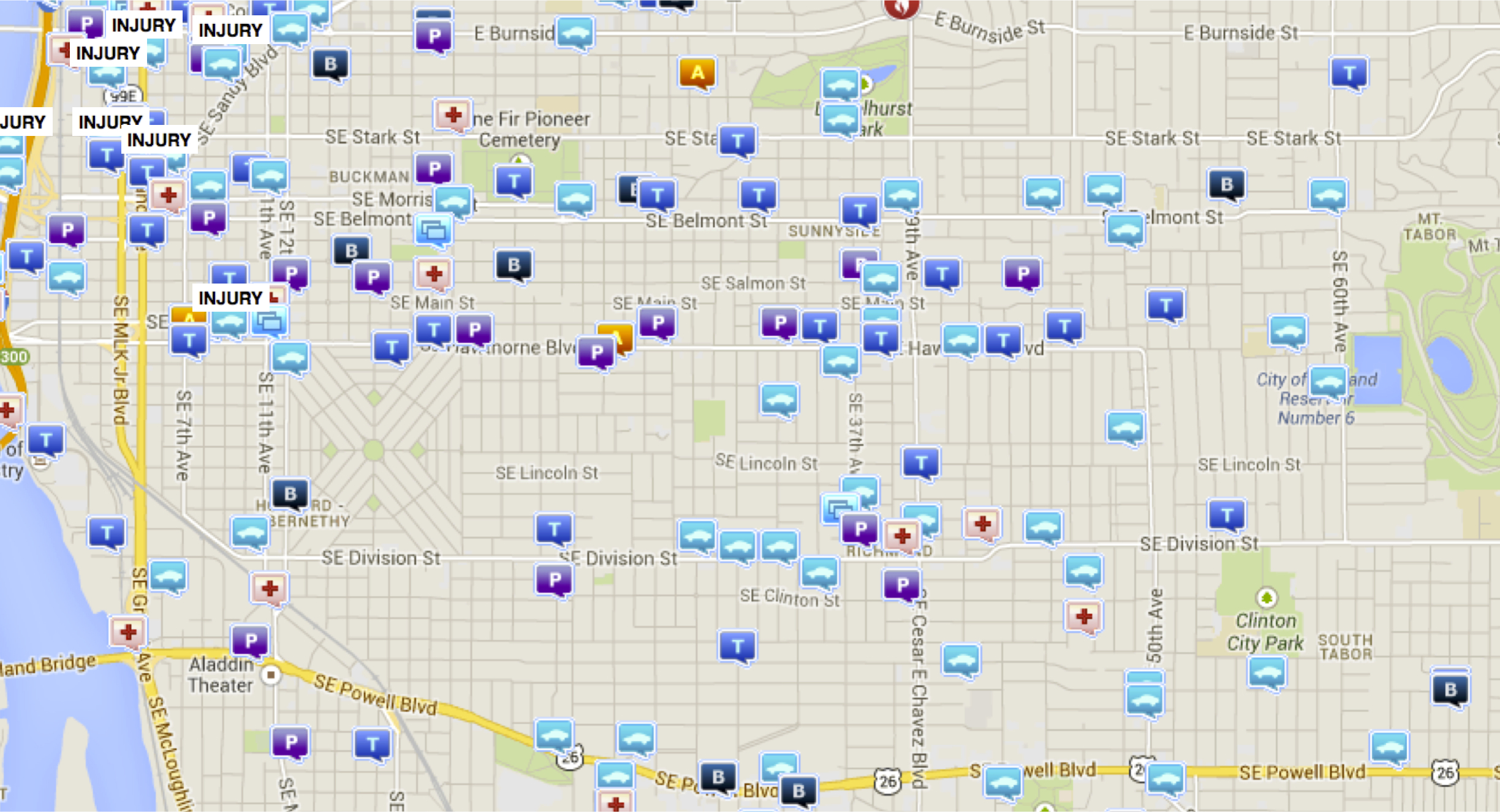 SE Alder and Grand: 1 non injury accident and 1 injury accident