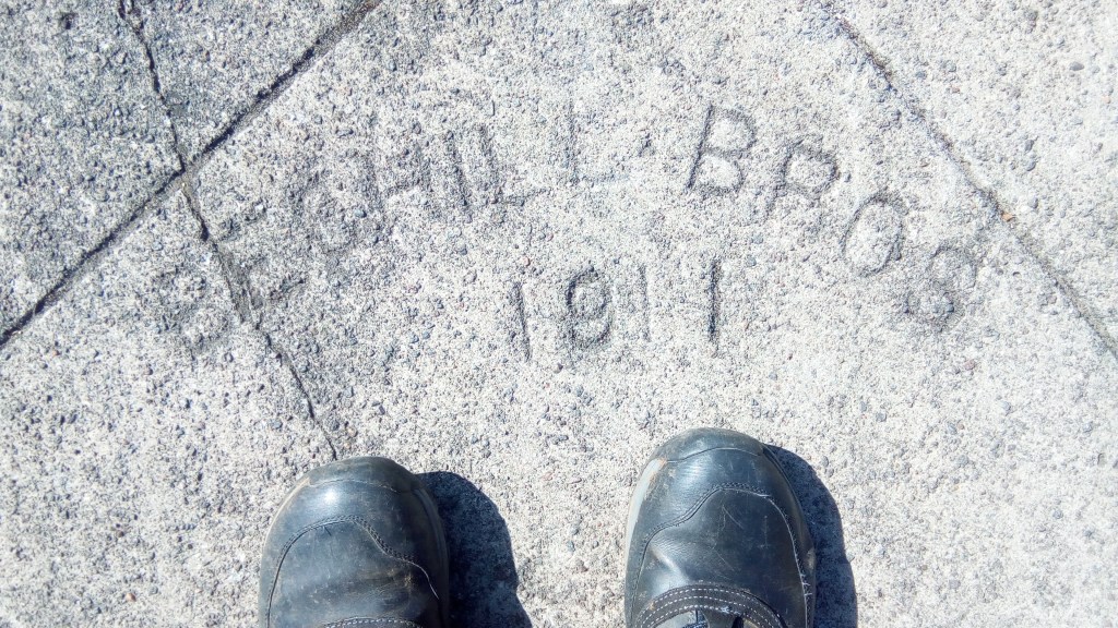 If you look at the photo above, you can just make out a name, Bechell Bros., and a date, 1911. These indicate the name of the sidewalk contractor and when the sidewalk was poured.