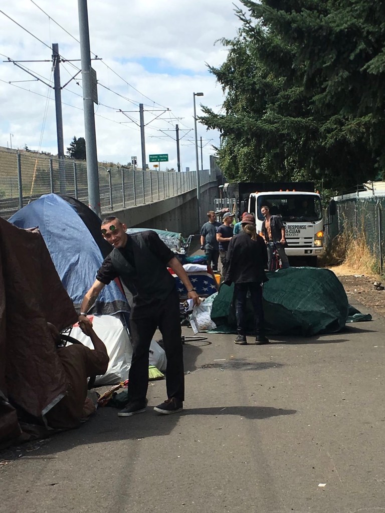 Having reported on the situation in the Lents neighborhood and having lived amongst that community myself, I volunteered to lead the group out there which consisted of: Greg Townley, who is co-director of Portland State University‘s Homelessness Research Action and Collaborative, a Street Roots vendor named Jeremy, and myself. We were also joined by KGW reporter Maggie Vespa.