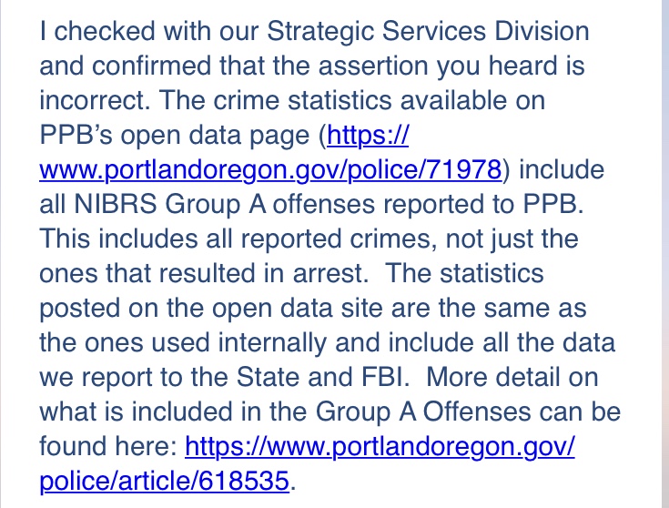 Kerensa said Portland Police told him that the public-facing statistics “are just substantiated stats that means a arrest was made. When no arrest is made they don’t report that in public stats even if crime occurred the full raw data with substantiated and unsubstantiated is much higher.”