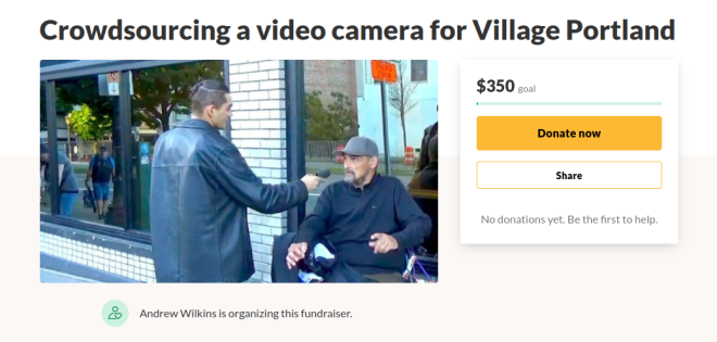 We’re starting small and specific: A new video camera that can help share the stories of all the amazing organizations, volunteers, and small businesses here in Portland. $350 will get us a second-hand video camera, backup battery, and SD card for Cory Elia to be able to move at his own Batman-like pace, and be where I cannot.