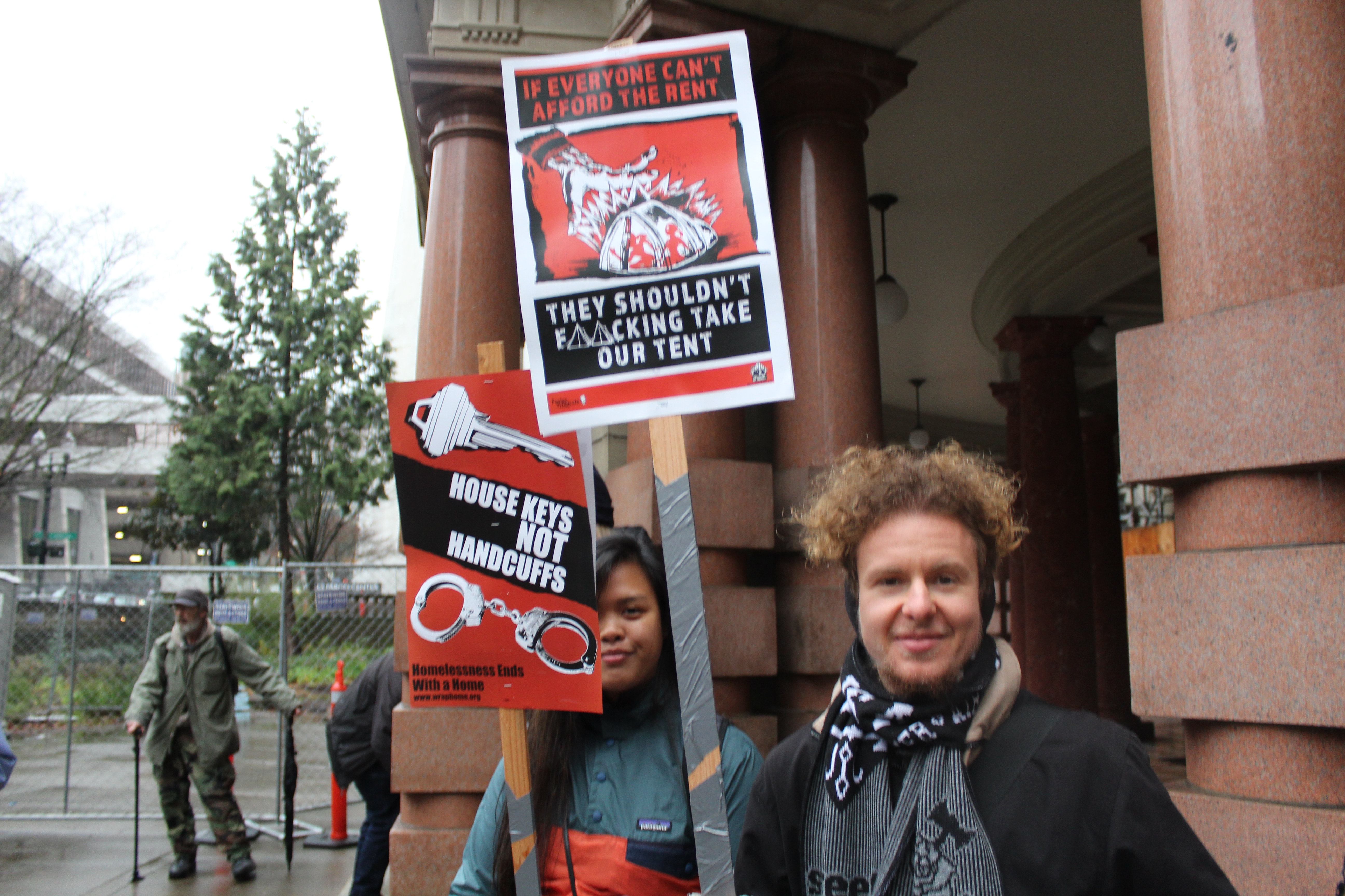 During a rainy, windy Thursday afternoon a group of around 30 to 40 people assembled in front of Portland‘s City Hall for a protest rally calling for the city to stop sweeping houseless encampments. The group states that the practice of sweeps is highly traumatizing to the houseless community which is already highly vulnerable.