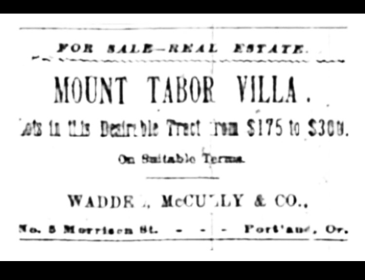 Since two generations of my family (not counting my own first two years) lived on Mount Tabor, I keep my eye out for interesting information about the Mount Tabor neighborhoods. I also know that if I want to learn about the Montavilla area before it was called Montavilla, I need to research the Mount Tabor vicinity. The histories of Mount Tabor and Montavilla are very closely linked, at least, until they became rivals.