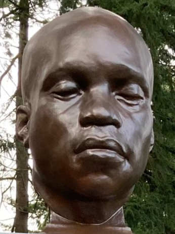 The sculpted head of a strong, thirty-ish, brooding Black male, perhaps pondering his own historical contributions, his self-worth— all questions now part of a heightened national conversation about racial inequality.