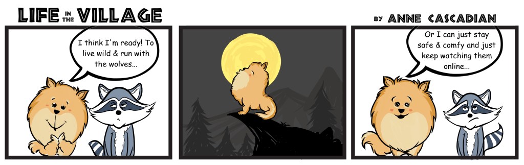 I appreciate you giving it a look and supporting our indie media venture. And if you’re not quite ready to venture out, there are a few online options… and at the least: here’s a new “Life in the Village” cartoon from contributor Anne Cascadian.