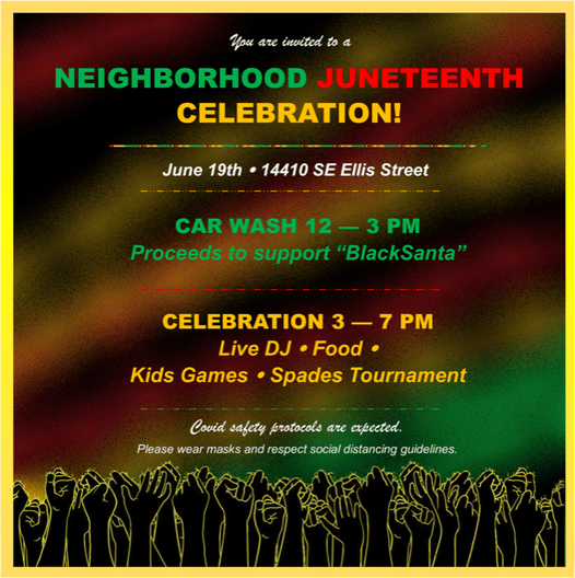 It’s now an official holiday in Oregon, and the neighbors in the Powellhurst-Gilbert Neighborhood Association are throwing a Junteenth celebration. It all begins at noon with a car wash benefiting Black Santa, and then at 3 p.m. the party continues with a DJ, food, games for the kids, and a spades tournament.