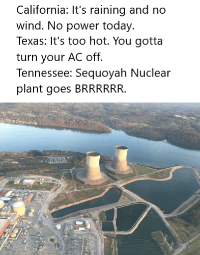 It’s a huge employer, and has tamed the Tennessee River and transformed the landscape with 49 sites dams (29 of which generate hydro power). It also operates three nuclear plants, five coal-burning / fossil fuel plants, and one pumped hydroelectric plants at Raccoon Mountain (if you don’t know what pumped hydro is, it’s worth a deeper dive).