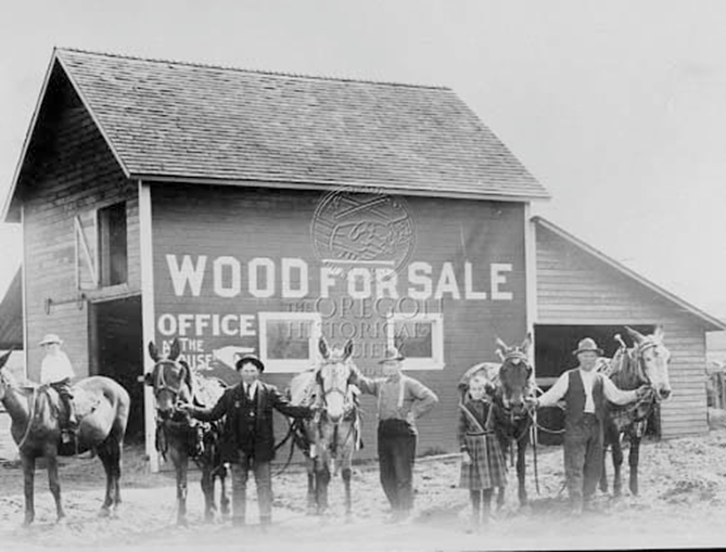 John B. Wiltse, the owner of this fuel yard located at 82nd and East Burnside, holds the team on the left.