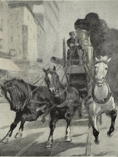 When a fire broke out, a speedy response was essential; and horses were trained to respond quickly. When the alarm bell rang, they stood ready to receive their harnesses and gear. They then trotted to their assigned positions waiting to be hitched to the heavy engine. In seconds, they were heading to the fire. As men fought the fire, the trained horses waited calmly.